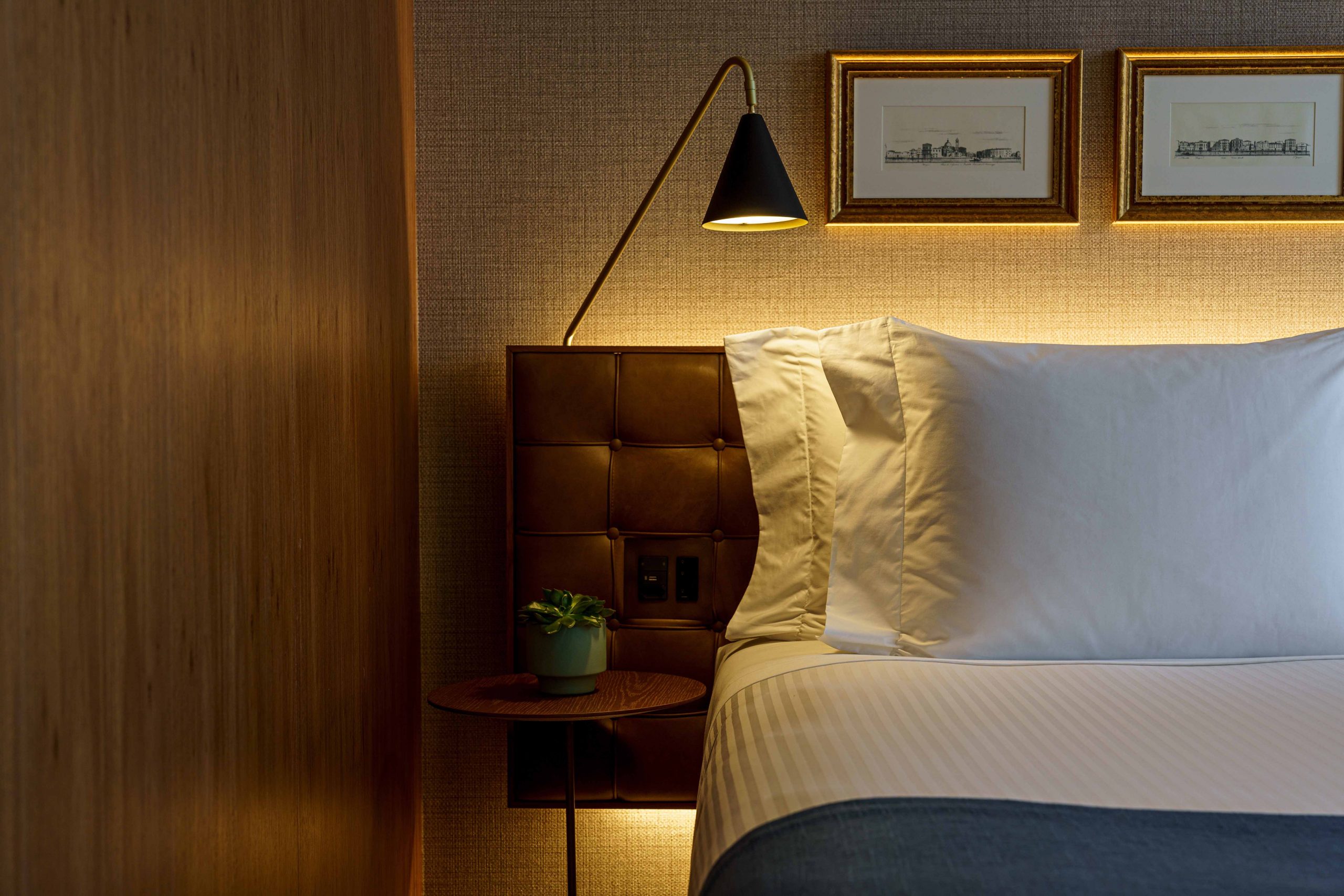 Distribuídos em 20 andares, os 107 apartamentos do Fasano São Paulo Itaim, variam de 30 a 190 m² e estão divididos em 6 categorias. Nos quartos, a escolha dos móveis é um passeio por diferentes gerações do design brasileiro: a poltrona Vronka, de Sergio Rodrigues, é combinada com o sofá Matriz, assinado por Jader Almeida, e com o banco ripado, obra do Studio MK27. As suítes foram decoradas com imagens da Itália antiga, todas angariadas pelo próprio Gero Fasano em suas viagens.